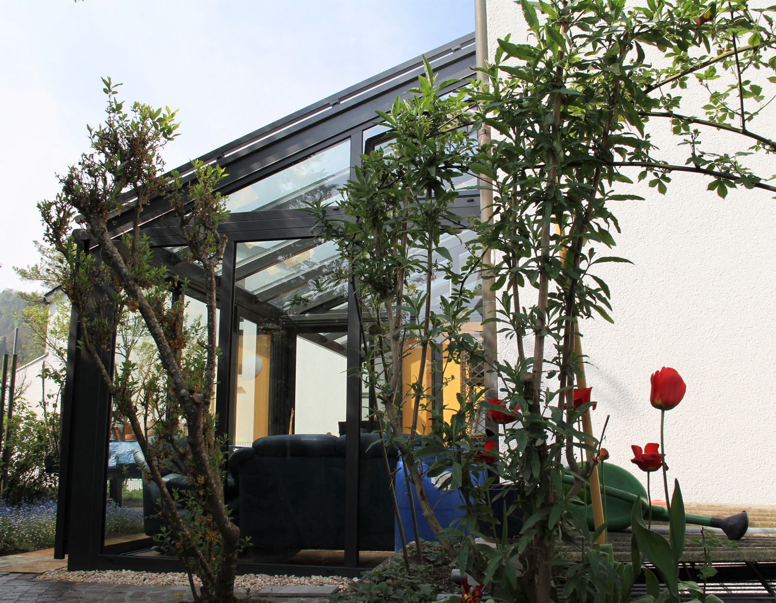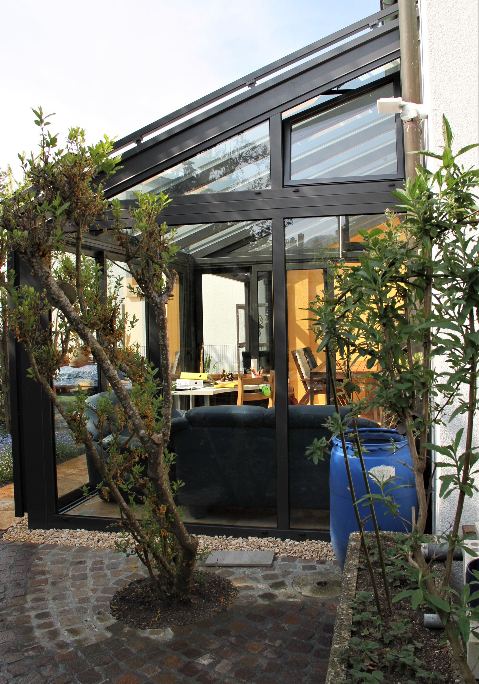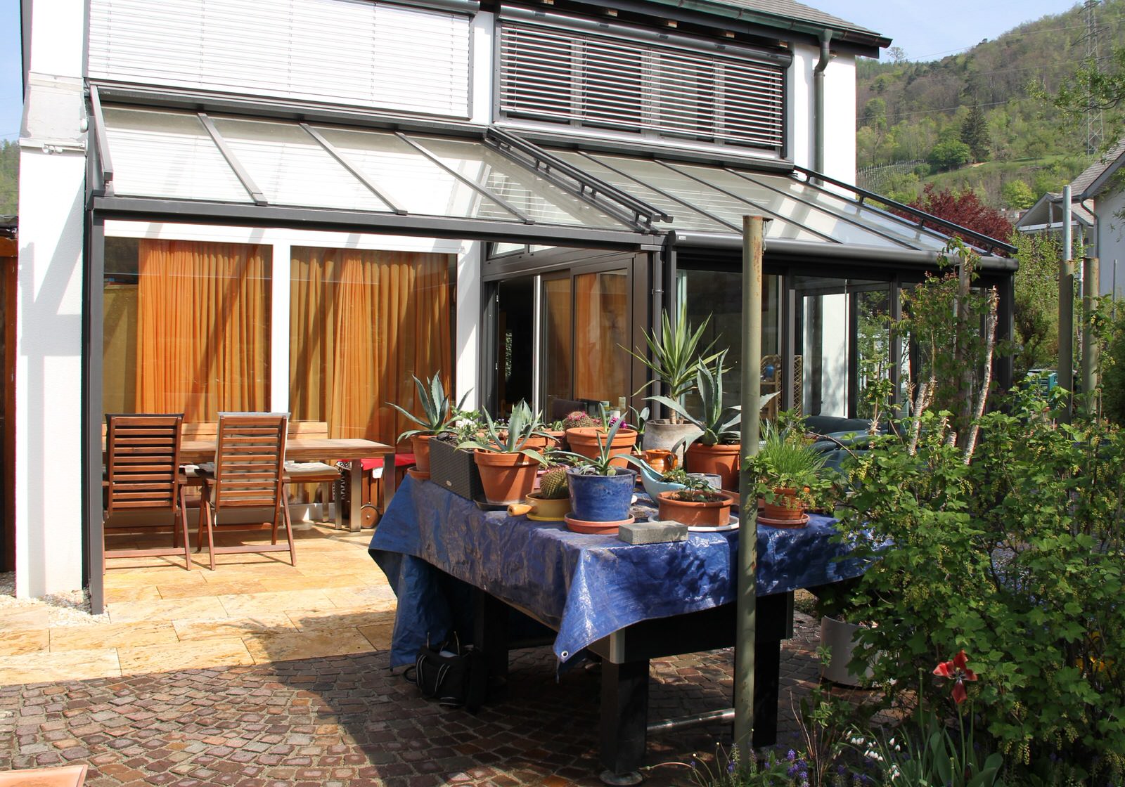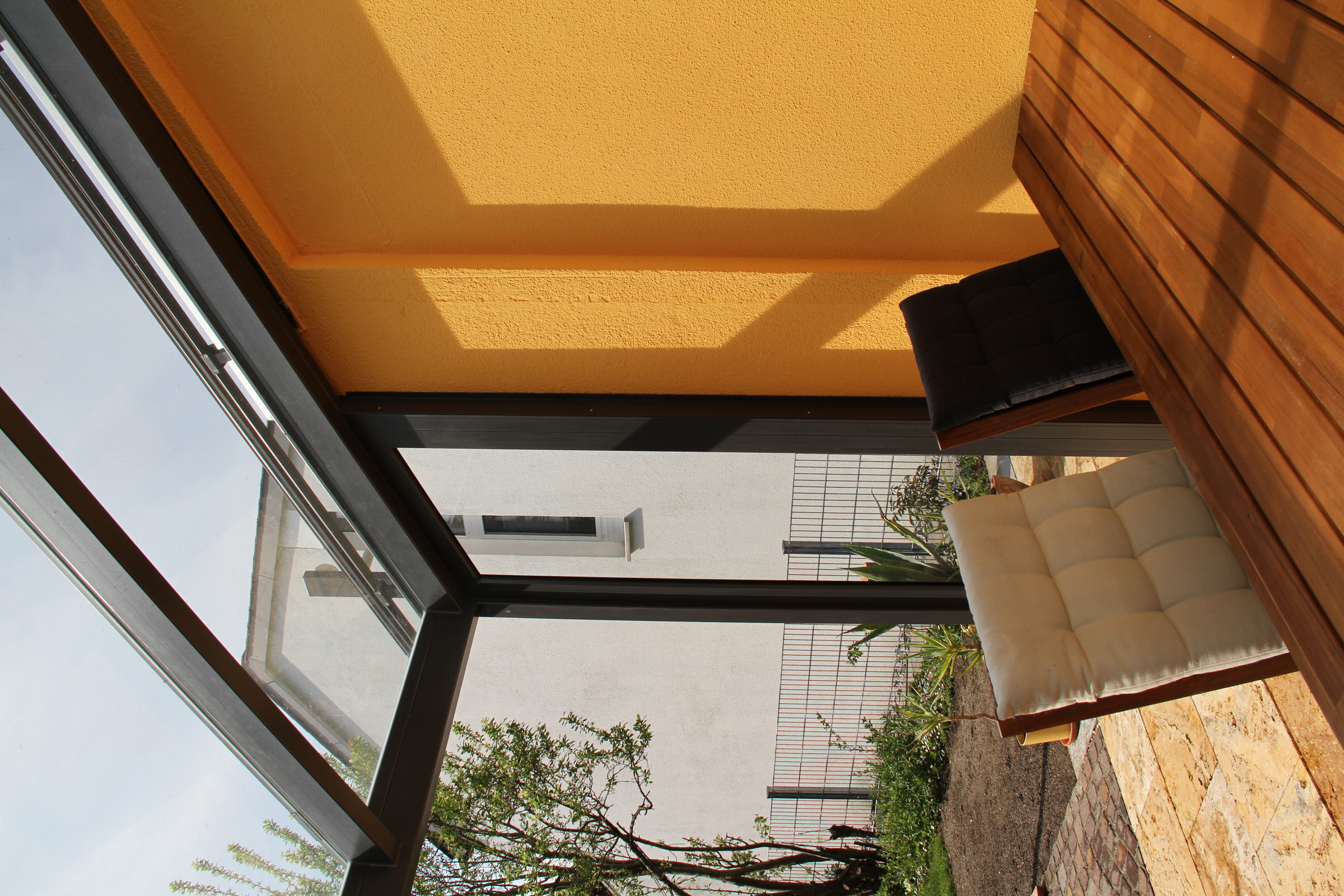 Wintergarten, Schiebewand, Beschattung, Glasdach